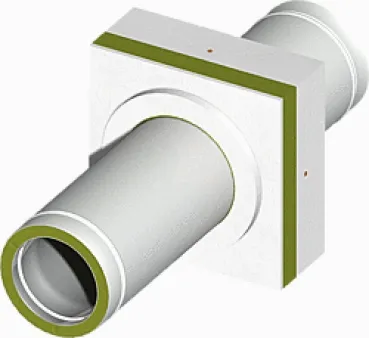 Eine Brandschutzdurchführung aus Calciumsilikat stellt die montagefreundliche und zeitsparende Alternative zu herkömmlichen Wanddurchführungen dar. Eine größere Wandöffnung und das Ausmauern können vermieden werden.